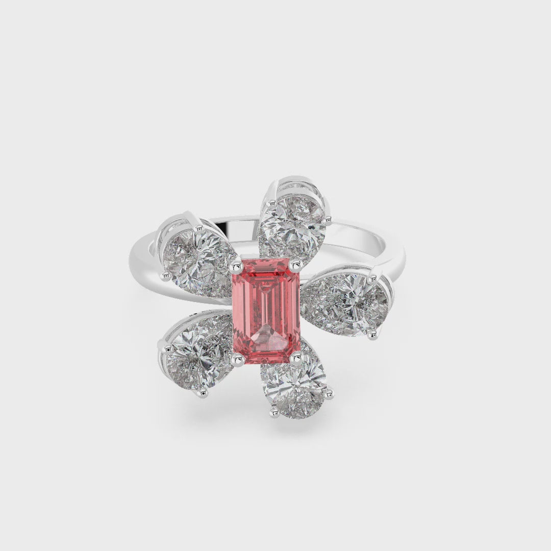 Diamond Shape: Emerald Pink 1.66ct , Round 0.13ct, Pear 3.55ct